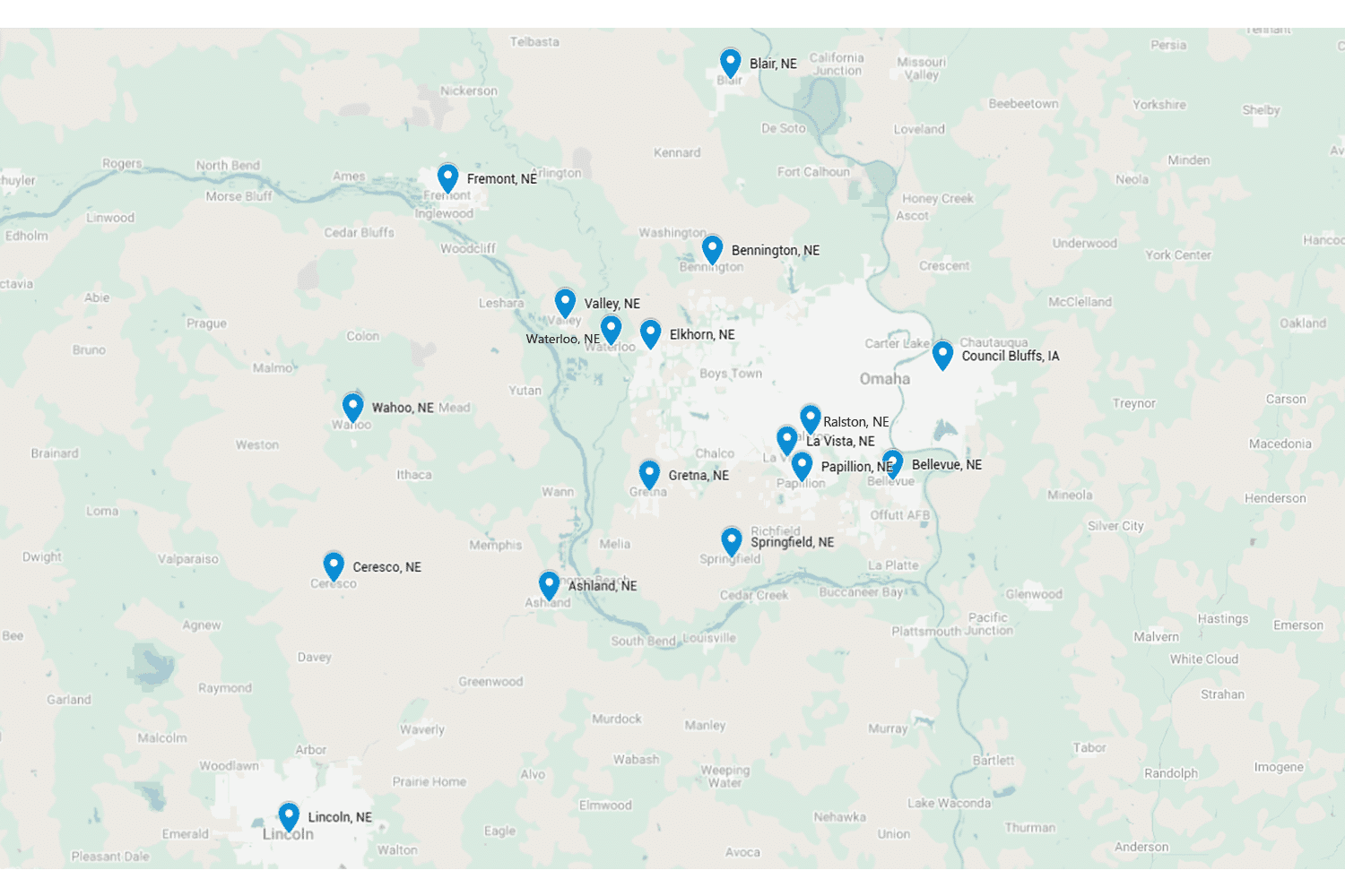 We offer fence installation in the following cities and surrounding areas located in Douglas, Sarpy, Cass, Washington, Dodge and Saunders counties in Nebraska.